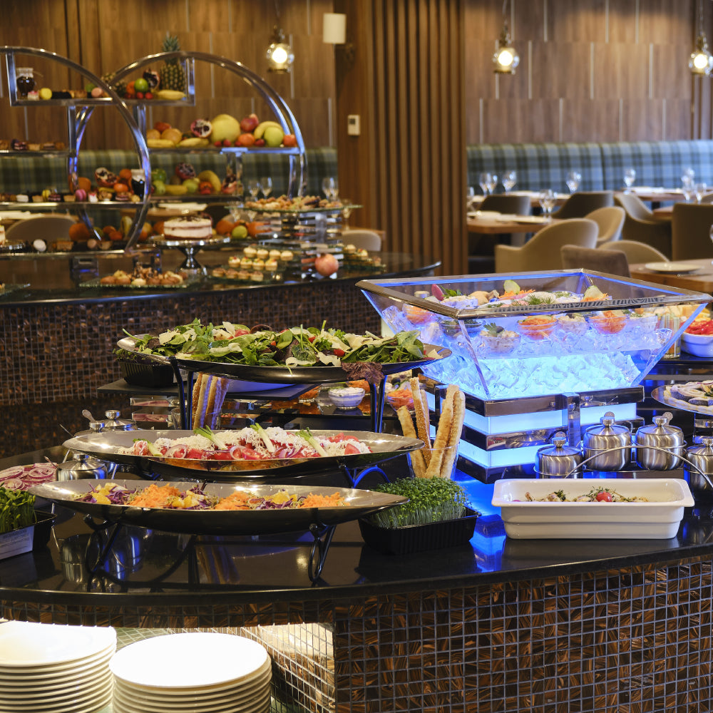 Закуска – 07:30 ч. – 10:00 ч.- топли напитки (кафе - Еспресо, капучино, чай, мляко, мляко с какао), трапезна вода и различни плодови сокове.