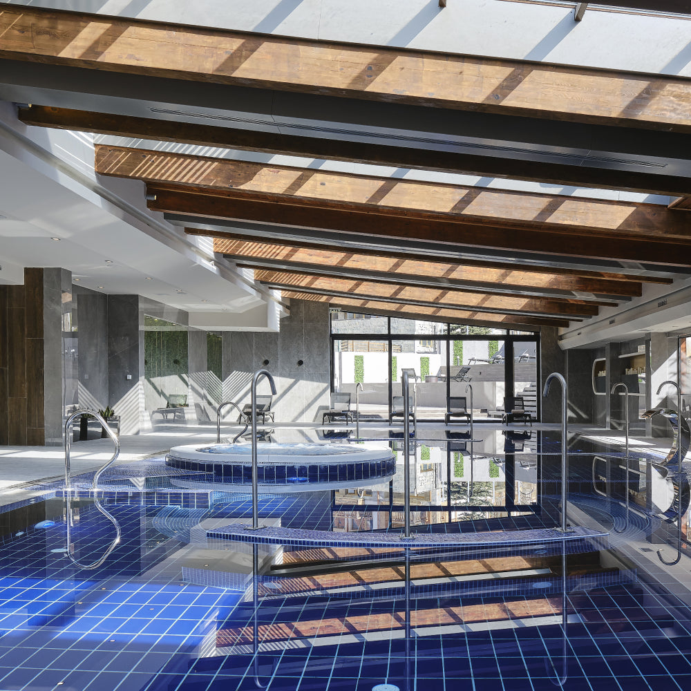 - Ползване на 1000 кв.м. СПА център с отопляеми открит басейн Aquatonic 34°C и закрит басейн Aquatonic 36°C
