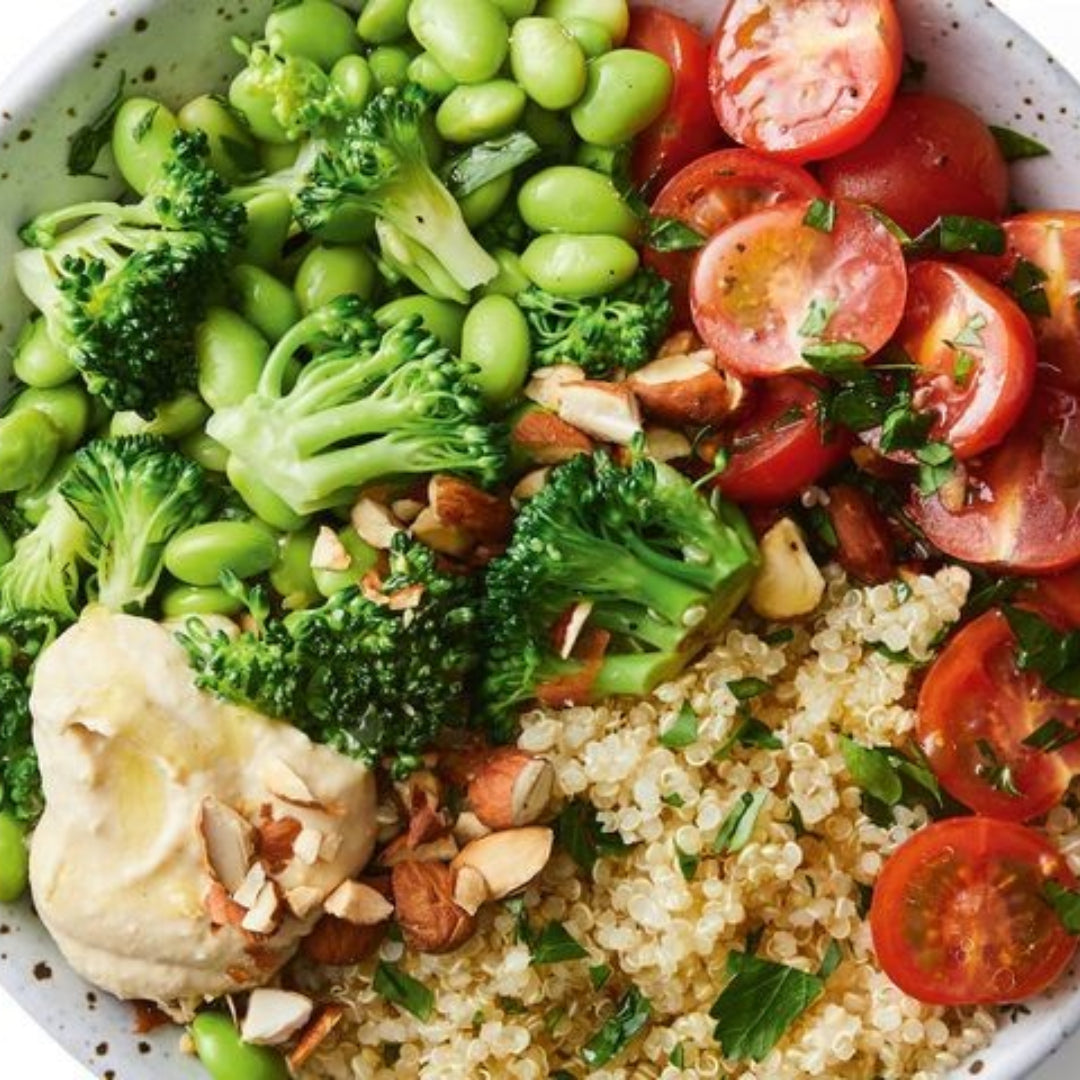 - Салата с броколи, репички, едамаме, киноа, хрупкави пъдпъдъчи яйца и катък – пролетен цветен баланс между текстури и свежест и традиция и здравословност