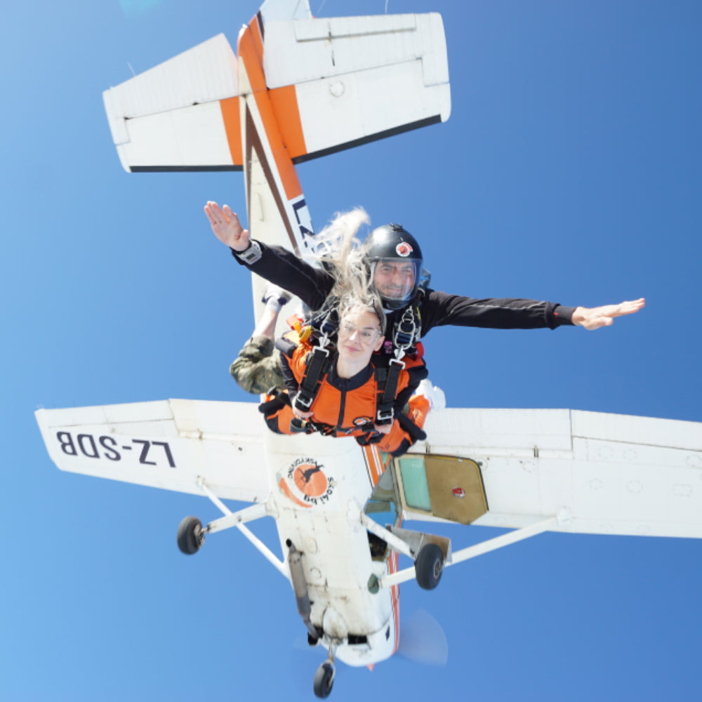 Скокът с парашут е свободно падане и 100% адреналин при пълна липса на гравитация! От височина 3500м изживейте 50 сек. свободно падане, със скорост до 240 км/ч.