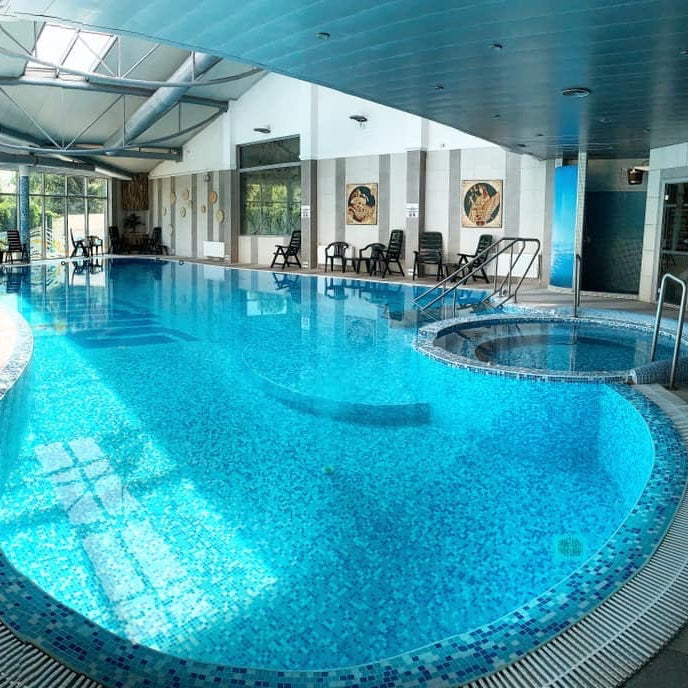 СПА: Топъл басейн със сребърно-йонна филтрация (34°C) и детска зона , парна баня, финландска и инфраред сауна, контрастен душ, фитнес
