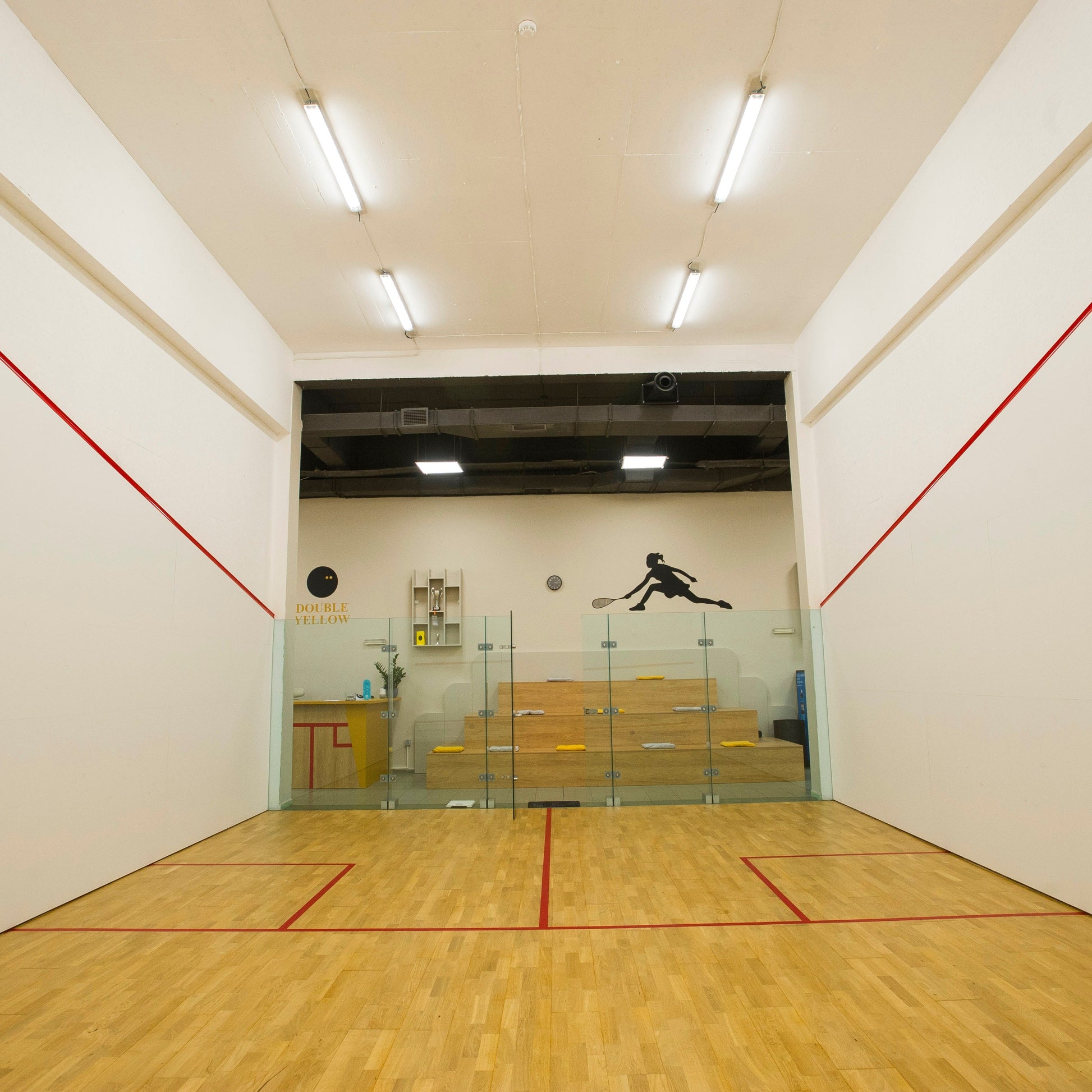 Double Yellow Squash Club е модерно скуош пространство с три професионални корта, посветено на активния начин на живот и създаването на вдъхновяваща среда за всеки играч.