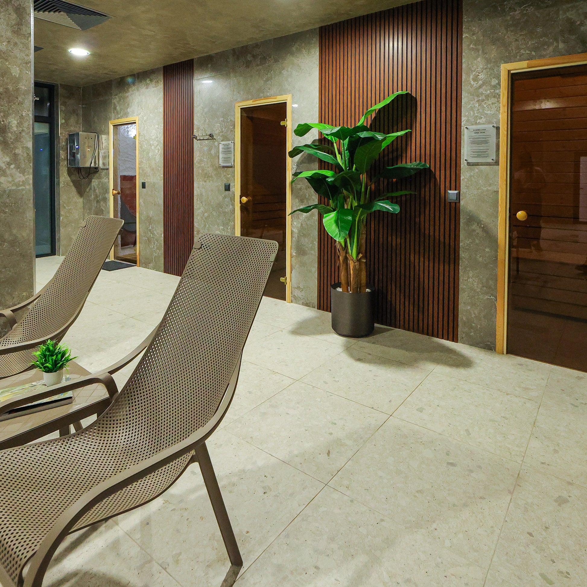 - Билкова сауна – температура до 60° C, с билкови настойки има изключително положително въздействие върху дихателната система, кожата и косата.
